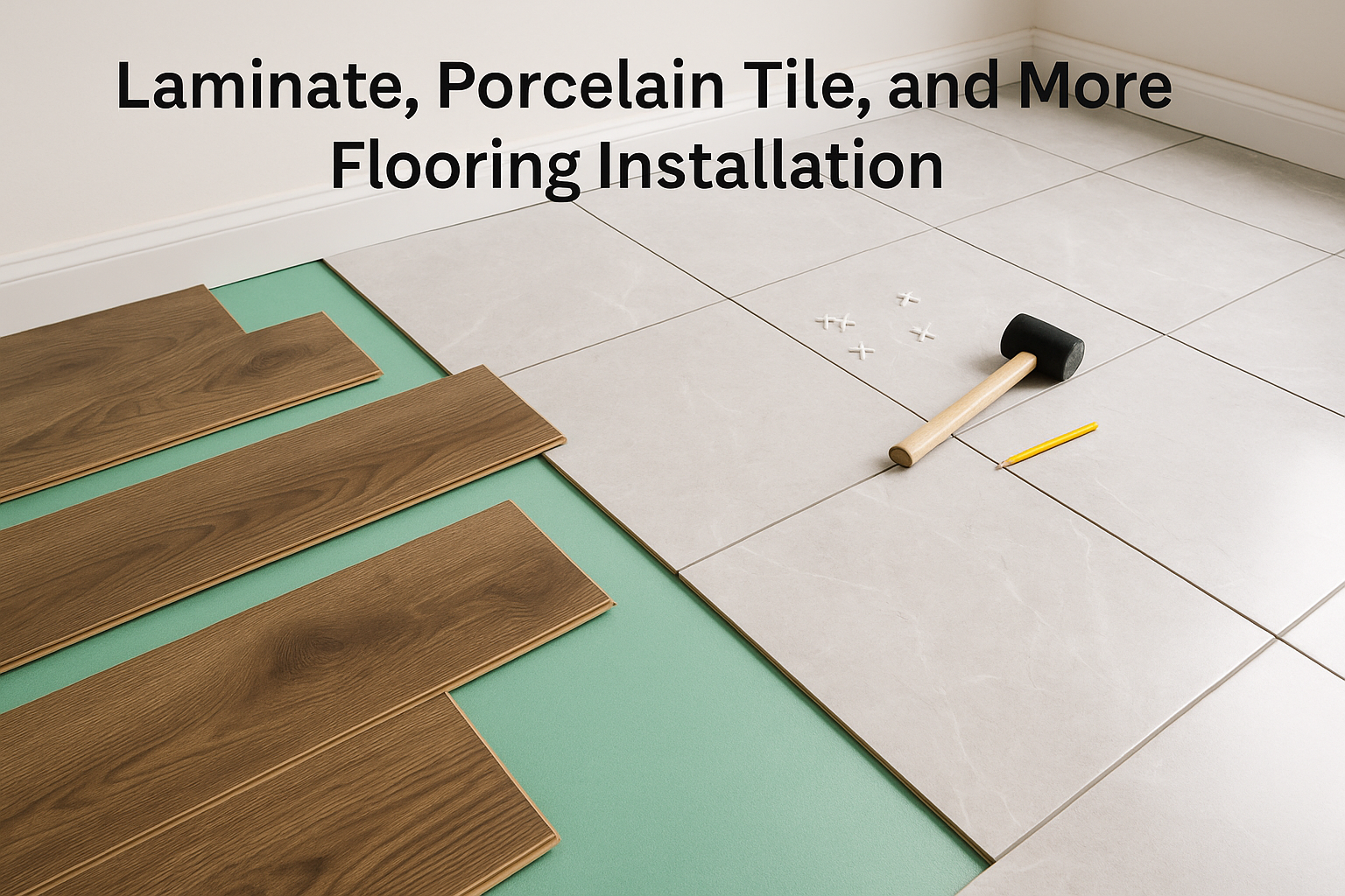 We install laminate, porcelain tile, vinyl, and ceramic floors with proper leveling, baseboards, and high-quality finishes. Our team will help you choose the right material for your space, usage, and budget — ensuring a durable, stylish, and low-maintenance result.